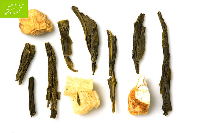 Owocowa i lekko słodka mieszanka ekologicznej zielonej herbaty, która została znakomicie połączona z jagodami guarany, korzeniami żeń-szenia i imbiru, kawałkami ananasa i pomarańczą, aby Twój dzień był pełen energii! Będziesz się nią delektować zarówno na ciepło, jak i na zimno.